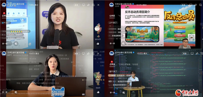 直播間里,虛擬AI智能反詐小馬警官就當(dāng)前常見的兼職刷單類詐騙、“殺豬盤”詐騙和網(wǎng)絡(luò)貸款詐騙等幾種常見的詐騙方式進(jìn)行講解,向觀眾科普“國家反詐中心”APP與全國預(yù)警勸阻專號96110,幫助大家有效識別網(wǎng)絡(luò)電信詐騙慣用伎倆,并就如何防范進(jìn)行深入講解。同時,深圳濱海大廈反詐展館、蘭州七里河公安“反詐總動員”小游戲、蘭州工業(yè)學(xué)院志愿者展示虛假網(wǎng)絡(luò)博彩網(wǎng)站及虛假APP盜取個人信息等內(nèi)容,引人入勝、發(fā)人深省。
