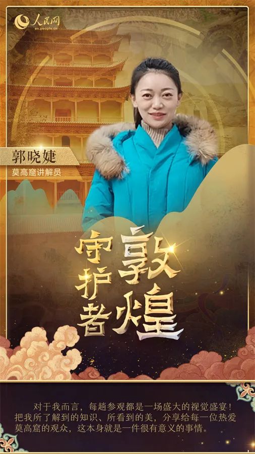 2008年大學畢業(yè)后,郭曉婕決定回到故鄉(xiāng)敦煌,選擇在莫高窟當導游。對于郭曉婕來說,每一次帶領游客參觀莫高窟,都是一場盛大的視覺盛宴。通過精美的壁畫和雕塑,現(xiàn)代人可以一窺古老的絲綢之路,更好地了解燦爛的敦煌文化。