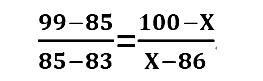 舉例說(shuō)明:假如小王的地理科目原始成績(jī)?yōu)?5分,在當(dāng)年全省參加該科目考試的考生中位于前2.5%,根據(jù)上表,該成績(jī)位列A等級(jí),該等級(jí)的賦分區(qū)間為100-86分。根據(jù)考生原始成績(jī)的分布,可知A等級(jí)的原始分?jǐn)?shù)區(qū)間(假設(shè)為99-83分),那么小王地理科目的賦分成績(jī)(X)可通過(guò)如下公式計(jì)算: