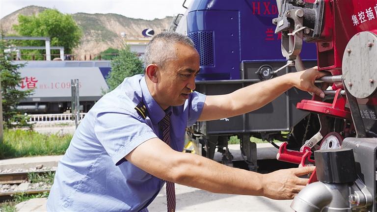 中國甘肅網(wǎng)7月9日訊 據(jù)蘭州晚報報道(記者 譚安麗 文/圖 通訊員 趙童)仲夏時節(jié),陽光明媚,沐浴著大西北的陽光,一列飛馳的鋼鐵巨龍在隴海線群山中穿行。駕駛室內(nèi),56歲的司機劉曉明手握閘把、眼睛緊緊注視前方,操縱著機車穿山越谷,快速馳騁。
