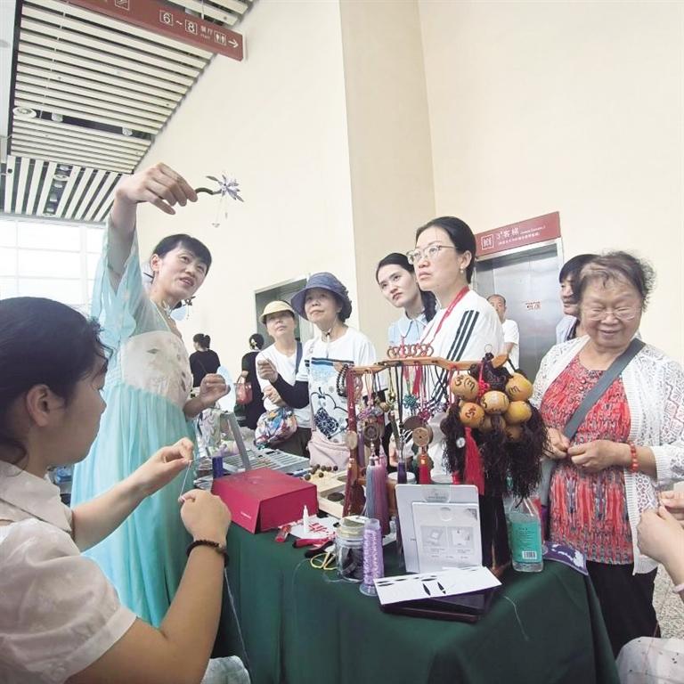 孫鳳茹告訴記者,這是自己帶領團隊第一次參加蘭洽會,看到那么多人喜歡自己和團隊成員們設計制作的作品,大家就特別開心。“有一對新婚夫婦喜歡上了我們的一款發(fā)簪,當場就買下來。因為它不僅是一件精美的頭飾,更是一款承載了滿滿祝福與美好寓意的愛情信物。”