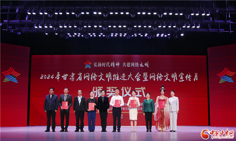大會(huì)播放了網(wǎng)絡(luò)文明宣傳片《2024年文明“網(wǎng)”事》,發(fā)布了2024-2025年度甘肅省網(wǎng)絡(luò)文明宣傳大使(20人)、2023-2024年度甘肅好網(wǎng)民(40人)、文明網(wǎng)站平臺(tái)(15個(gè))、文明賬號(hào)(25個(gè))、網(wǎng)絡(luò)文明典型案例(10個(gè)),網(wǎng)絡(luò)文明宣傳大使代表、甘肅好網(wǎng)民代表、文明網(wǎng)站平臺(tái)代表、文明賬號(hào)代表、甘肅省網(wǎng)絡(luò)文明典型案例相關(guān)負(fù)責(zé)人等分別作故事分享。與會(huì)領(lǐng)導(dǎo)向獲獎(jiǎng)單位及個(gè)人頒獎(jiǎng)并共同啟動(dòng)2024年甘肅省網(wǎng)絡(luò)文明宣傳月。
