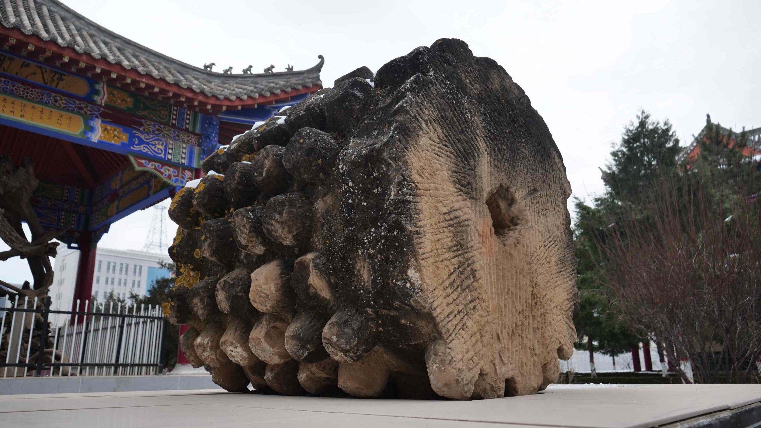 在隴東古石刻藝術(shù)博物館內(nèi)存放著的一個(gè)石碌碡,就是當(dāng)年修建秦直道所用,被考古學(xué)家譽(yù)為“最原始的壓路機(jī)”。