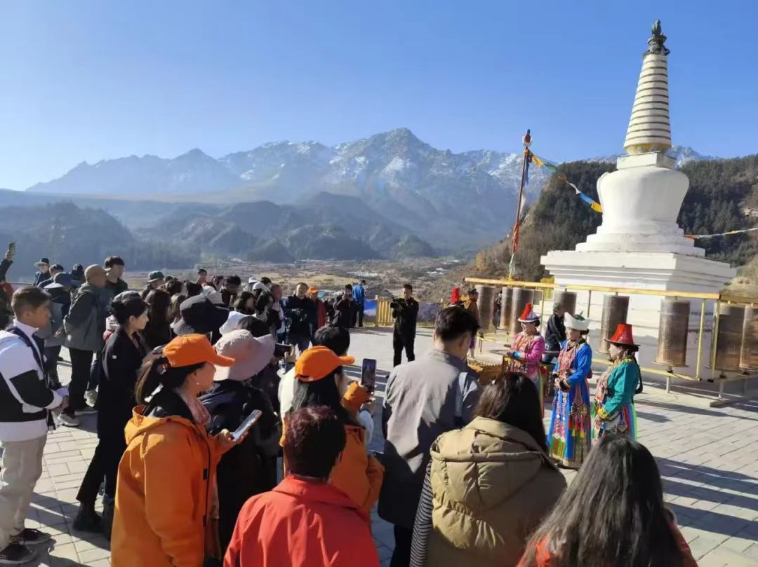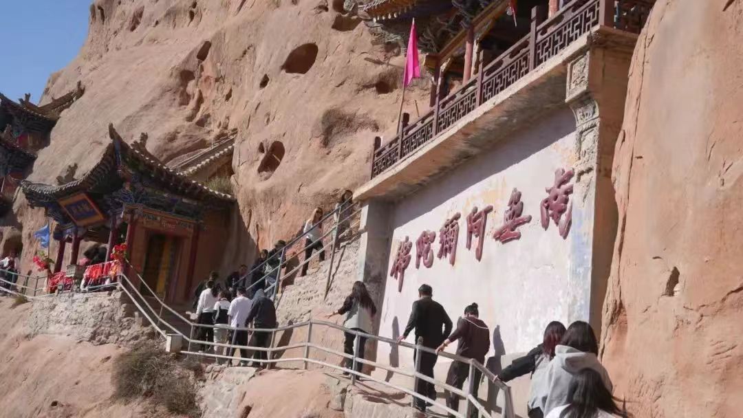 18日上午,迎著耀眼的晨光,采訪團(tuán)成員乘坐大巴車(chē)來(lái)到了集自然風(fēng)光、石窟藝術(shù)、民族風(fēng)情、宗教文化于一體的肅南馬蹄寺。馬蹄寺是河西走廊著名的佛教勝地,石窟群開(kāi)鑿于十六國(guó)北涼時(shí)期,距今約1600年的歷史,是絲綢之路上至關(guān)重要的歷史文化瑰寶,也是我國(guó)早期石窟的杰出代表。秋日的馬蹄寺,秋高氣爽,景色宜人,遠(yuǎn)遠(yuǎn)看去,紅綠相間,層林盡染,大家行走在落葉飄零的山間小路上,對(duì)這座建在懸崖峭壁之上、將棧道鑲嵌在山體之內(nèi)的石窟充滿了好奇。