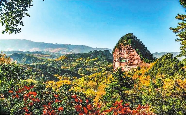 麥積山石窟 麥積山石窟地處天水市麥積區(qū)東南30公里的小隴山中,因該山形似農(nóng)家麥垛而得名。麥積山石窟與敦煌、龍門(mén)、云岡并稱(chēng)為中國(guó)四大石窟。麥積山石窟保存的造像以泥塑為主,歷代連續(xù)不斷,全面展示了古代泥塑發(fā)展演變的過(guò)程,是研究雕塑史、美術(shù)史的重要資料,有“東方雕塑陳列館”的美譽(yù)。