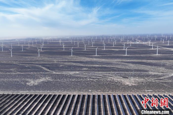 1月6日,航拍甘肅省酒泉市瓜州縣光伏和風力發(fā)電項目。李亞龍 攝