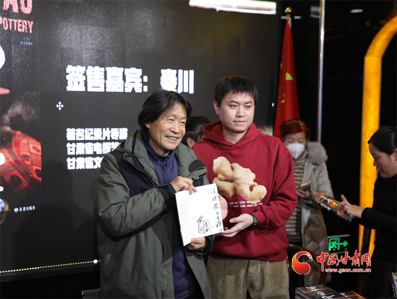 中國甘肅網(wǎng)11月24日訊 11月23日,《馬家窯·彩陶上的中國》公益展映暨同名圖書首場線下簽售在蘭州舉行。導(dǎo)演秦川親臨現(xiàn)場,與紀錄片愛好者近距離互動交流,分享紀錄片背后的創(chuàng)作故事,并為讀者簽售、分享新書。
