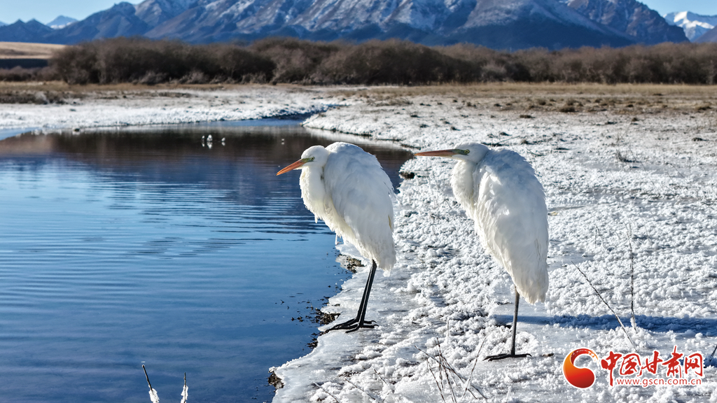 11月18日,初冬的甘肅山丹馬場(chǎng)鸞鳥(niǎo)湖濕地上,赤麻鴨、大天鵝、大白鷺三種珍稀鳥(niǎo)類悠然共處。它們或于冰面踱步,或在湖中游弋,或于淺灘佇立,共同構(gòu)成了濕地生態(tài)持續(xù)向好的生動(dòng)圖景。