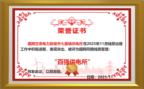 近日,國家電網(wǎng)公司2025年11月同期線損“百強供電所”榜單正式揭曉,國網(wǎng)敦煌市供電公司七里鎮(zhèn)供電所、莫高供電所、轉(zhuǎn)渠口供電所憑借扎實的線損治理成效集體上榜,加之9月已成功入選的沙州供電所,該公司年內(nèi)實現(xiàn)四所連登全國百強,線損精益化管控水平邁入全域領跑新階段,為2026年爭創(chuàng)同期線損“百強縣公司”筑牢堅實根基。