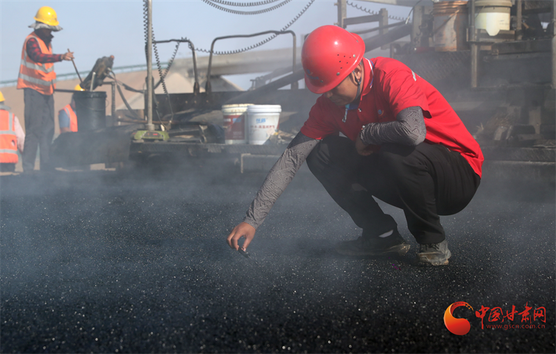 由甘肅公發(fā)工程建設有限公司承建的路面二標段全長35.3公里,自2025年4月進場以來,項目部以“謀在先、干在前”的節(jié)奏,調配33臺大型設備、93名施工人員,搶抓黃金施工期施工。