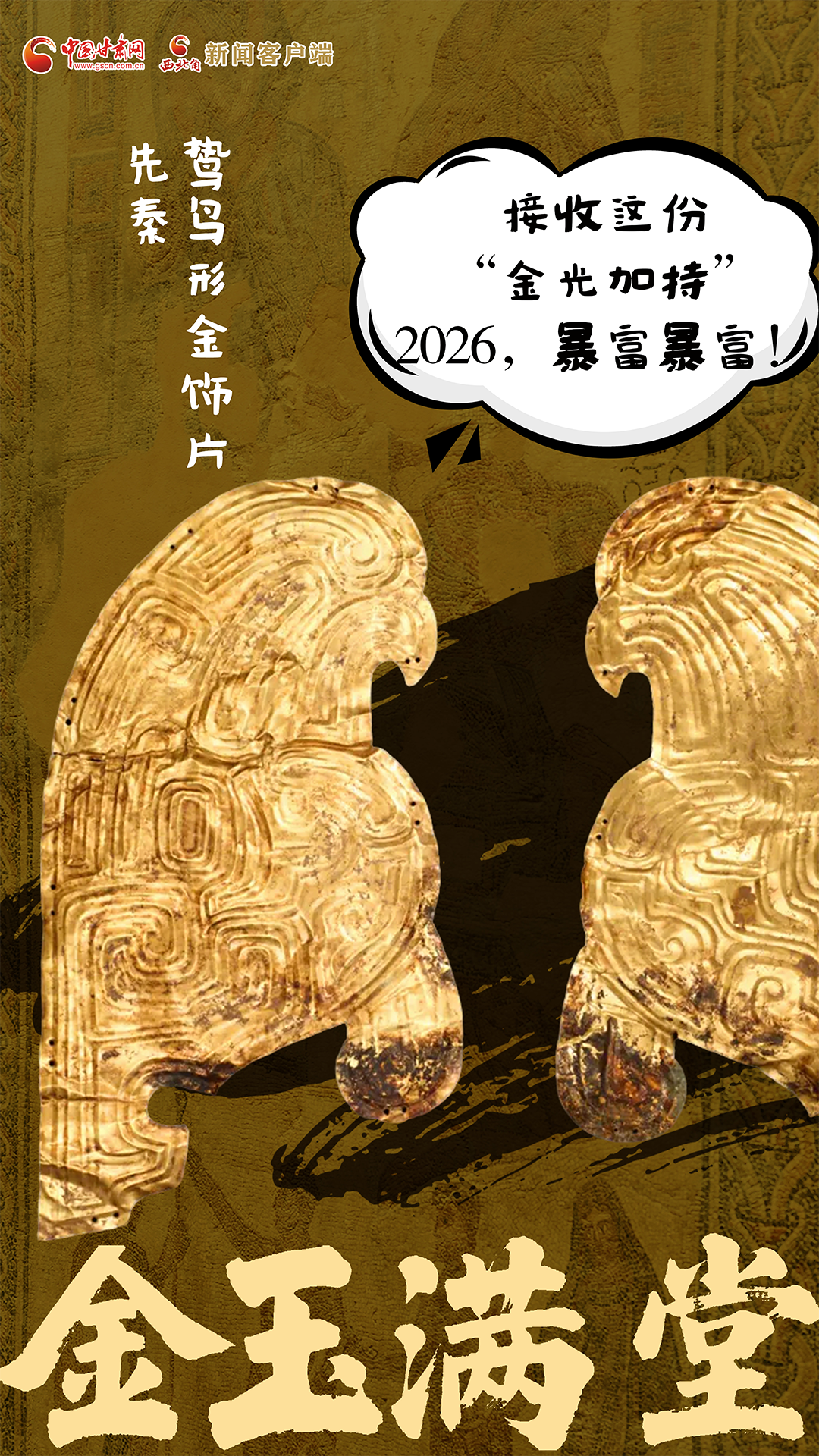簡介:這些金飾片是秦國早期國君棺槨或車輿上的裝飾。鷙鳥造型威猛,體現(xiàn)了秦人對鳥圖騰的崇拜,印證了“秦人東來”的學說,具有極高的歷史與藝術(shù)價值。