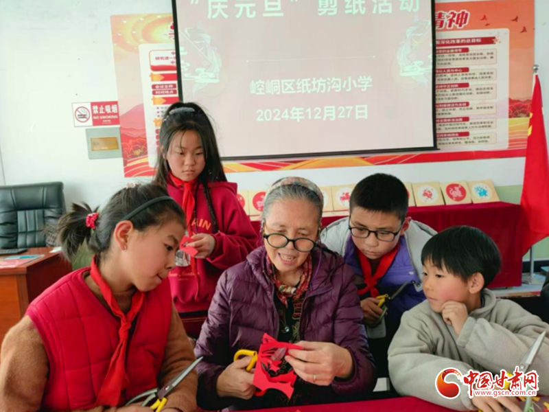 王茵教孩子們做剪紙