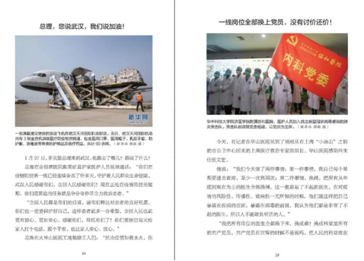 《2020:中國戰(zhàn)“疫”日志》一書以日志的形式,記錄了2020年1月23日到2月23日期間,中國每一天的戰(zhàn)“疫”故事:廣大醫(yī)護人員沒有遲疑、沒有退卻,和死神賽跑,與病毒抗爭,為生命接力;堅持工作的人民警察、外賣員、環(huán)衛(wèi)工人、快遞員、志愿者……穿梭在城市的每個角落,守護著自己的城市;許多媒體記者冒著被感染的風險,深入一線采訪報道……
