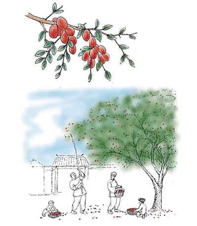 《果兒小典》是一本讀起來輕松,又別有一番滋味的書。隨著人們生活水平的提高,水果干果店鋪隨處可見,店里的果子更是天南海北,無所不有。南北半球的水果干果薈萃一堂,讓人產(chǎn)生了一種果樹永不休息、隨手可得的錯覺。什么才是果子帶給我們的正常感覺呢?那應(yīng)該是一同經(jīng)歷光陰荏苒,春華秋實,經(jīng)過漫長等待之后,還要付出體力才能達成的相逢,以及由此帶來的喜悅。在憂思家國的杜甫筆下,是“庭前八月梨棗熟,一日上樹能千回”,更帶著一種少年輕狂的沖動和興奮??梢哉f,果子正因為寄托著我們的情感,而變得別有滋味。