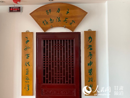 天水市圖書館坐落在藉河之濱,臨流水而擁綠樹,環(huán)境清幽。那是一個(gè)雙休日,天氣晴好,記者懷著好奇、敬仰的心情,走樓梯登上了圖書館四樓。特藏室門口上方掛著“邵力子捐書陳列室”扇形木制匾額,左右兩邊掛著木制對(duì)聯(lián)“力學(xué)廬中藏經(jīng)典,子孫世代惠恩澤”,是集于右任的字。木料呈淡黃色,典雅而洋溢書香之氣。為了滿足記者的愿望,特藏室負(fù)責(zé)人李東暉犧牲了休息時(shí)間,熱情地接待我們并進(jìn)行認(rèn)真講解。