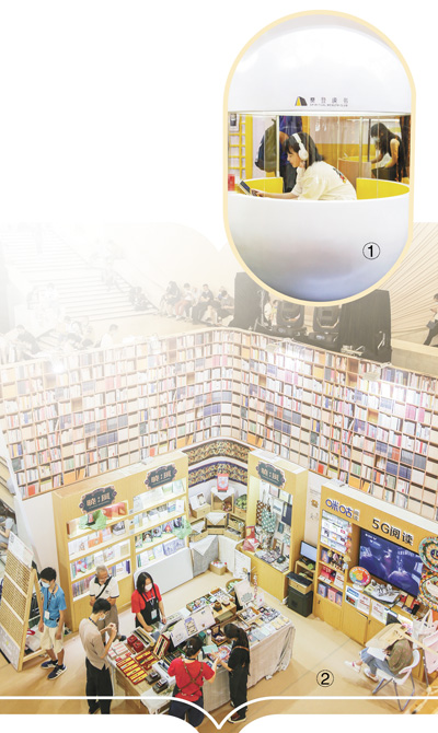 圖①:讀者在上海書展現(xiàn)場體驗“未來自習室”。