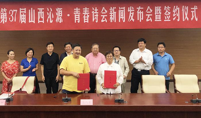 沁源縣委書記金所軍介紹沁源縣盛產(chǎn)油松、褐馬雞,村村有秧歌隊(duì)和籃球場(chǎng),有山有水,美麗又美好。他將作為“全國森林旅游示范縣”的沁源縣詩意概括為“三晉大地的香格里拉”“近在咫尺的桃花源”。沁源縣委宣傳部部長黃貴河對(duì)沁源縣的文學(xué)創(chuàng)作情況及第37屆“青春詩會(huì)”活動(dòng)承辦設(shè)想進(jìn)行了介紹。發(fā)布會(huì)結(jié)束后,沁源縣政府副縣長李建萍與《詩刊》事業(yè)發(fā)展部副主任藍(lán)野簽定了合作協(xié)議。