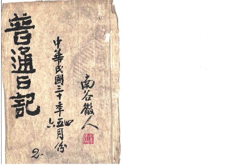 金城古玩城軒潤堂主人馬先生,近日重金收購一冊裴建準《普通日記》,行書寫本,雙頁折疊裝訂,凡66面。面長31厘米,闊24厘米。每面十行字,行22、23、24字不等。封面題三行字:左上題“普通日記”四大字,下題阿拉伯數(shù)字“2”;中題“中華民國三十年四、五、六月份”;右題“南谷山人”,鈐“裴建準印”白文印。何以稱《普通日記》呢?他是否還有其他《日記》待考。