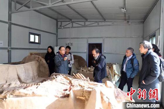 2020年11月15日,甘肅省文物考古研究所在甘肅天水市組織召開《甘肅毛家坪遺址車馬坑整體提取及實驗室考古發(fā)掘工作》項目初步驗收會。專家組現(xiàn)場考察了實驗室清理、加固、拼接及保護復原的三輛遺跡車馬。甘肅省文物考古研究所供圖