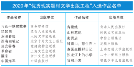2020年“優(yōu)秀現(xiàn)實(shí)題材文學(xué)出版工程”入選作品名單