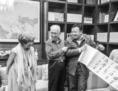 2018迦陵學(xué)舍中秋雅集,作者與葉嘉瑩先生、汪榮祖先生合影