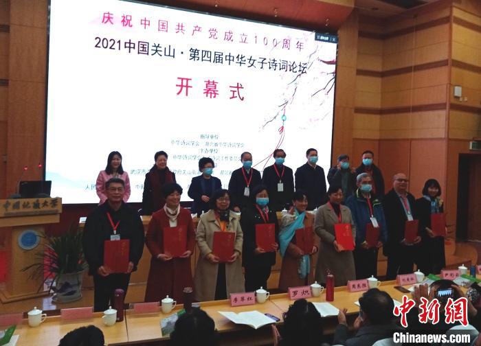 中新網(wǎng)武漢3月21日電 (記者 艾啟平)2021中國(guó)關(guān)山·第四屆中華女子詩(shī)詞論壇21日在中國(guó)地質(zhì)大學(xué)(武漢)開幕,全國(guó)各地嘉賓、詩(shī)詞界人士以及詩(shī)詞愛(ài)好者等200余人出席。中國(guó)古典文學(xué)研究專家葉嘉瑩通過(guò)視頻為論壇發(fā)來(lái)賀詞。