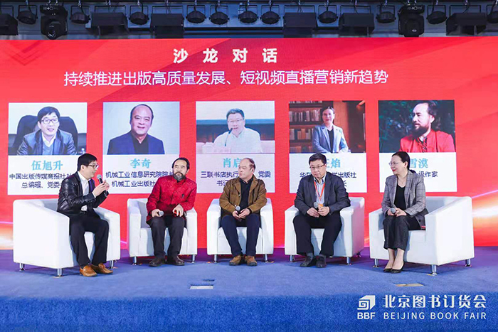 沙龍對話環(huán)節(jié)中,生活·讀書·新知三聯(lián)書店總編輯肖啟明,機械工業(yè)信息研究院院長、機械工業(yè)出版社社長李奇,華東師范大學出版社董事長、社長王焰,國家一級作家雪漠,共同探討短視頻直播營銷心得、經(jīng)驗及趨勢。