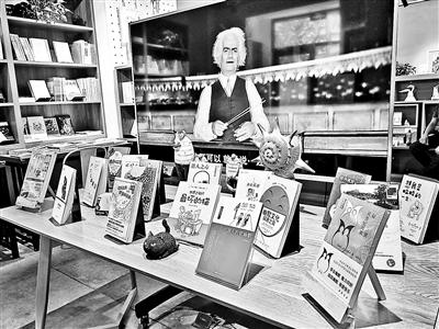 書店正中擺放著一個巨大的電視屏幕,正在循環(huán)播放著卓別林的喜劇電影《城市之光》經(jīng)典片段,屏幕前面擺放著各類被重點推薦的新書。“這本《笑的科學》是比較有學術(shù)性的書;這本《我思故我笑》,是講哲學和幽默的書;這本《世界上最壞的貓》,我們還為它搭配了一個黑貓玩具,這樣看起來比較吸引人。”書店主理人豈航向北青報記者介紹道,