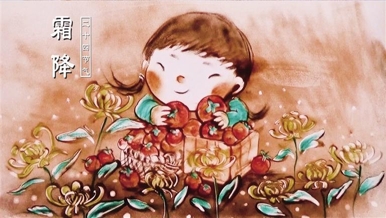 “天氣也如花語一般,有著未約定卻俗成的含義。”宋英杰對霜降節(jié)氣的解讀十分生動(dòng):“‘秋風(fēng)蕭瑟天氣涼,草木搖落露為霜。’霜降物候,草木黃落,蟄蟲俯,該飄零的飄零,該潛藏的潛藏。但霜色意濃,秋之,反倒是秋季最多彩的時(shí)期。”