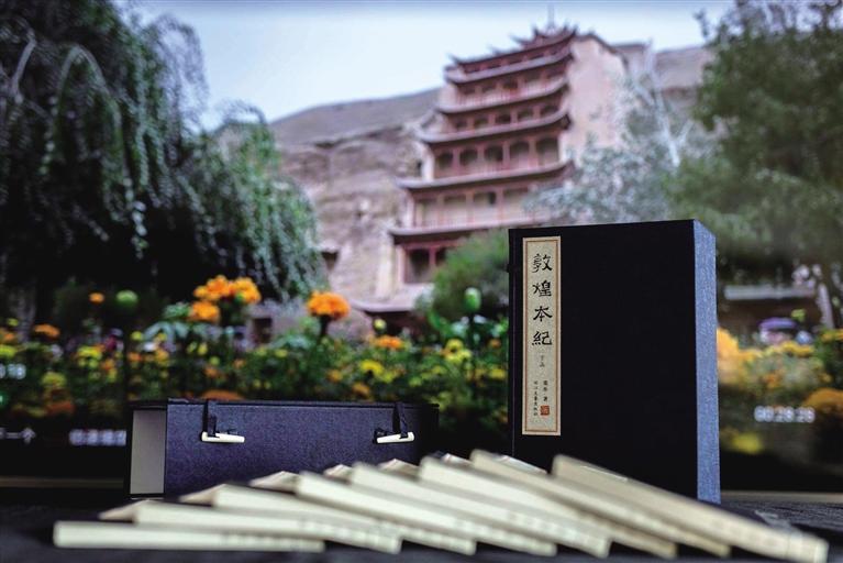 兩個月后,我如愿以償?!抖鼗捅炯o(jì)》繁體線裝本(限量版)出品,兩函,每函八冊,總計十六冊,繁體豎排,全手工裝訂。技藝之美,工序之繁,裝幀之考究,未之見過!當(dāng)我打開拿到手上時肅然起敬,自然會靜下來,恭恭敬敬翻閱,你能感受到甘肅豐富的歷史文化資源、厚重的文化積淀和波瀾壯闊的滄桑巨變。正是偉大的藝術(shù)和同樣偉大的宗教,在敦煌建筑了人類精神的輝煌莫高窟,人們生活在其中,才擁有現(xiàn)實(shí)人生意義的充實(shí)感和踏實(shí)感。