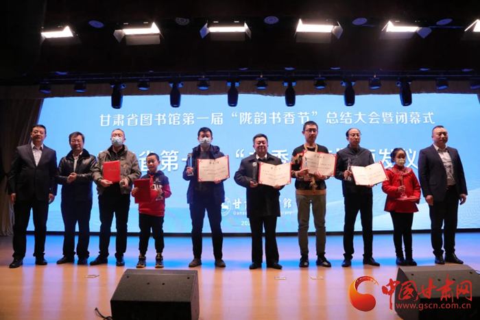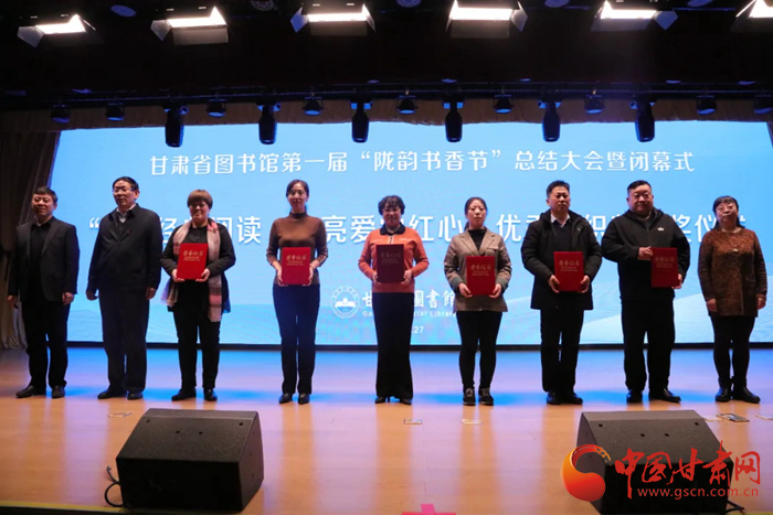 中國甘肅網(wǎng)12月28日訊(本網(wǎng)記者 張?zhí)m琴 通訊員 吳鵬)12月27日,歷時(shí)8個(gè)月的甘肅省圖書館第一屆隴韻書香節(jié)圓滿落幕。閉幕儀式上播放了第一屆“隴韻書香節(jié)”活動(dòng)總結(jié)短片和書香家庭宣傳短片,公布了“隴韻書香節(jié)”形象標(biāo)識(shí)(LOGO)方案,并為“甘肅省第一屆書香家庭”獲得者、“紅色經(jīng)典閱讀 點(diǎn)亮愛黨紅心”活動(dòng)獲獎(jiǎng)?wù)哳C獎(jiǎng)。