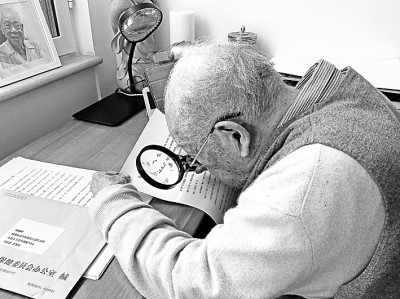 馬識途在認真工作中。馬萬梅攝