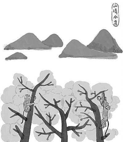 《猴兒與少年》中的“猴兒大學(xué)士三少爺”是王蒙貢獻(xiàn)給文壇的一個生動有趣的藝術(shù)形象,從生物學(xué)、生態(tài)學(xué)、生命學(xué)的意義上,王蒙寫活了“猴兒性”。猴兒三少的伶俐機(jī)智、閃轉(zhuǎn)騰挪,自由自在自如自安自鬧自玩,不怕人、不服人、不討好于人的獨特“個性”,給人留下深刻印象,特別是對猴兒哥二叔耍猴兒、“三少爺照鏡子”的描寫,簡直妙絕——左照右看,東抓西撓,前伸后縮,急躁狂亂,猴態(tài)百出。從耍猴兒的角度看,實在趣味盎然。