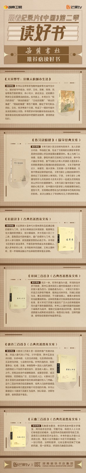 與此同時(shí),紀(jì)錄片《中國(guó)》第二季也在湖南新華書店的全省各門店覆蓋宣傳,書友可以通過新華書店,遇見“中國(guó)高水平出版物,遇見美好中國(guó)”。