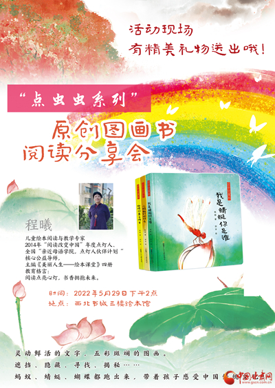 主題活動(dòng)包括聯(lián)合甘肅少年兒童出版社邀請(qǐng)兒童繪本閱讀與教育專家程曦為小讀者分享“點(diǎn)蟲(chóng)蟲(chóng)系列”原創(chuàng)圖畫書,西北書城“快樂(lè)童年·好書相伴”主題6.1折兒童圖書展,線上微商城“抽盲盒”,“小劇人”兒童沉浸式閱讀,筱筱老師講繪本故事,親子手工制作“小粽子”,與蘭州市圖書館共同開(kāi)展“慶六一·迎端午”我是朗讀者活動(dòng)。