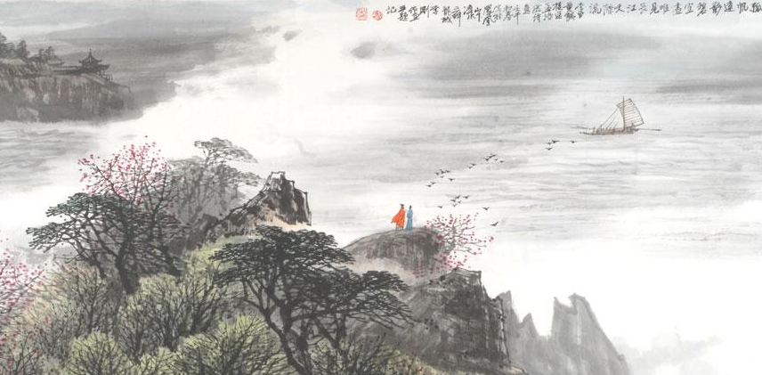 自古楚國(guó)多才子。楚人孟浩然,詩(shī)才橫溢。八月湖水平,一個(gè)“平”字,惟妙惟肖地描述出了洞庭湖煙波浩渺水天一體壯麗景色。