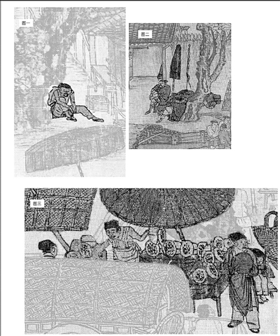 雖然沒(méi)有什么特別的社會(huì)意義、政治意義,或者其他宏大意義,但是對(duì)于個(gè)人來(lái)說(shuō),這個(gè)大叔卻喚醒了我們的某種情感,因此,讓我們與張擇端產(chǎn)生了情感共鳴。是怎樣的情感共鳴呢?請(qǐng)用心看圖,他裸露胳膊,衣著簡(jiǎn)單,是一個(gè)中年勞工形象,此時(shí)也許是午間,他可能只吃了簡(jiǎn)單的飯食(旁邊是飯館,他在飯館外的地上坐著,因此推測(cè)他沒(méi)有進(jìn)店消費(fèi)),甚至有可能他連午飯也沒(méi)舍得吃,只是坐在樹(shù)下歇會(huì)兒,然后就要開(kāi)始尋找下午的工作。只要我們用心去看他的樣子,就知道他是真的累了。為了讓讀者更加確信他是因?yàn)檎娴钠@鄱菹?,不知有意還是無(wú)意,張擇端在大叔附近的遞鋪墻外畫了幾個(gè)睡覺(jué)的人,請(qǐng)看圖二。其中,有一個(gè)靠著大樹(shù)睡覺(jué)的士卒,他翹著腿,雙臂圍攏,也在睡覺(jué)。