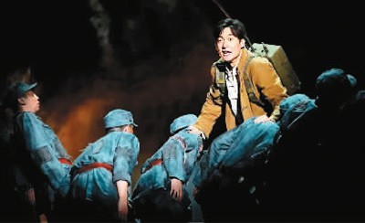 例如表現(xiàn)李安本在第三團(tuán)無(wú)線電培訓(xùn)班當(dāng)教員的場(chǎng)面時(shí),設(shè)計(jì)了兩支竹竿來(lái)表現(xiàn)擔(dān)架,模擬了人物坐在滑竿上被抬上山的感覺,也表現(xiàn)了三團(tuán)官兵學(xué)習(xí)無(wú)線電發(fā)報(bào)的場(chǎng)景。這種源自于民間戲曲中的元素,在歡快詼諧的音樂中,將老百姓生命力的可愛和戰(zhàn)士們生命力的鮮活躍然呈現(xiàn)于舞臺(tái)之上,作品的天地一下就寬大了。角色設(shè)置上也向傳統(tǒng)戲曲做了借鑒,杜南海又悶又有力量,是典型的文戲角色,而大刀、大牛、二牛這些角色都是用武戲的方式。這些都是基于傳統(tǒng)的創(chuàng)新和延展。
