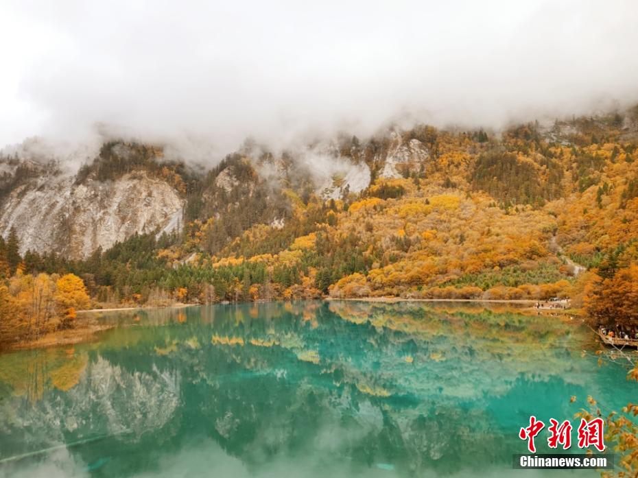 資料圖:深秋時節(jié)的九寨溝景區(qū)滿山的彩林與碧藍的海子交相輝映,宛如一個色彩繽紛的童話世界。曹惠君 攝