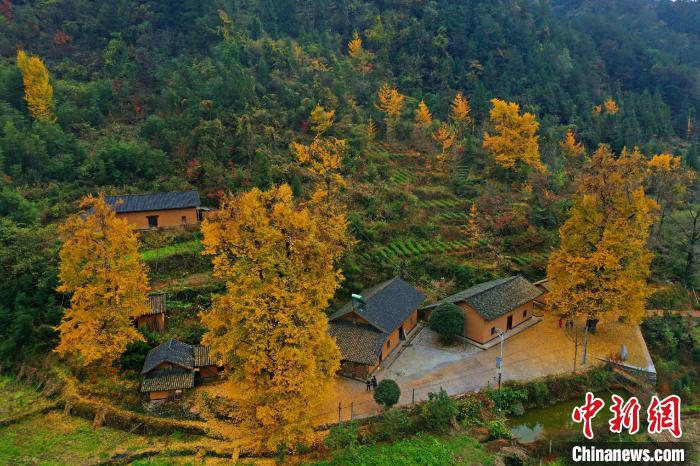資料圖:幾棵千年銀杏被秋意染成金黃。 吳延陵 攝