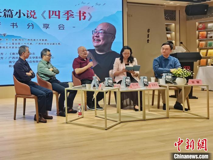 當天,由《南方文壇》雜志主辦的凡一平長篇小說《四季書》新書分享會在南寧市舉行。凡一平攜新書出席,東西、張燕玲、張柱林、李約熱、朱山坡、田耳等作家、評論家以及高校師生、文學(xué)愛好者約100人參加。