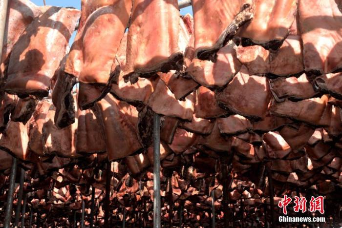資料圖:隴西臘肉瘦肉燦艷似紅霞,瘦而不柴;肥肉晶瑩若瑪瑙,肥而不膩,微帶透明。 張愛平 攝