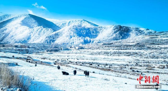 資料圖:初冬時(shí)節(jié),蘭州市榆中縣馬坡鄉(xiāng)迎來降雪,一場(chǎng)冬雪過后,村莊田野沐浴在雪景中,藍(lán)天白雪下,似童話世界。張學(xué)江 攝