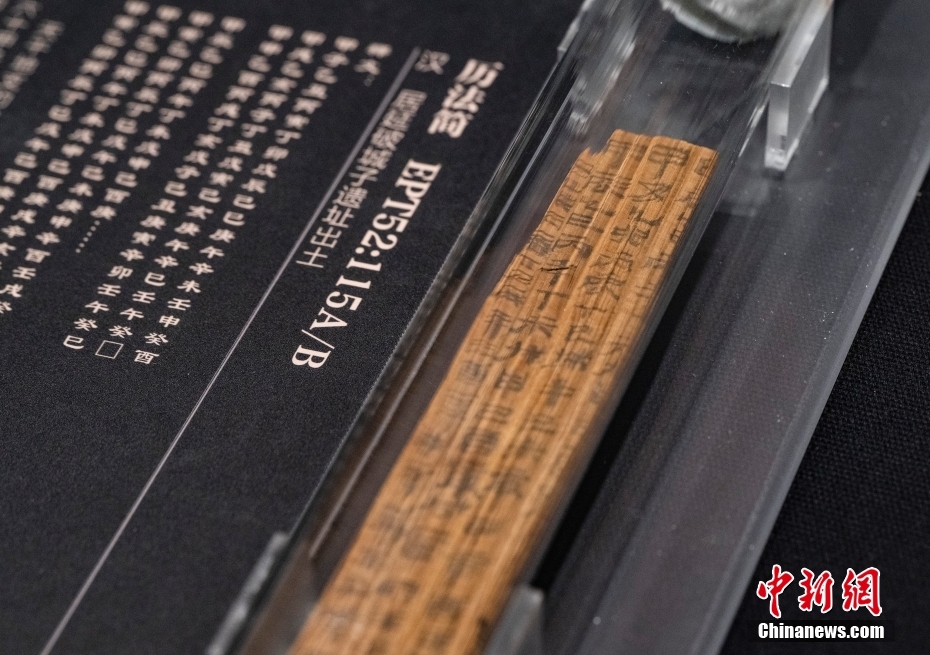 1月17日,“二十世紀初中國古文獻四大發(fā)現(xiàn)展”正在位于北京的國家典籍博物館內(nèi)展出。本次展覽分為“殷墟甲骨”“居延漢簡”“敦煌遺書”“明清檔案”四個專題,首次將分藏于各處的四大文獻薈萃一堂,集中多種類型的珍貴文物文獻共249種,382件,是目前為止“四大發(fā)現(xiàn)”文物最大規(guī)模的展覽。圖為“居延漢簡”展區(qū)中展示的一條“歷法簡”的真跡實物展品。 中新社記者 侯宇 攝
