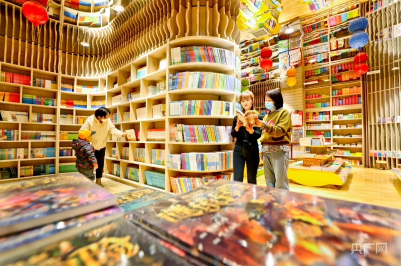 1月23日,市民帶著孩子在甘肅張掖錦華書城讀書、選書、購書。(央廣網(wǎng)發(fā) 王將 攝)