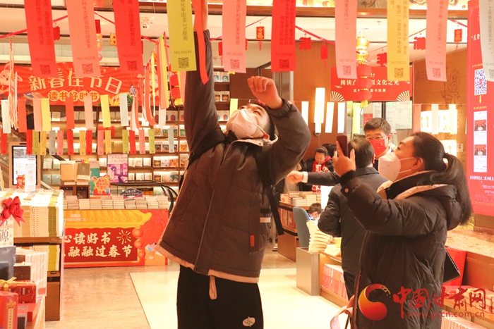 記者走進(jìn)節(jié)日的新華書店,五顏六色的元宵燈謎和大紅燈籠交相輝映,營造出喜氣洋洋的節(jié)日氛圍。