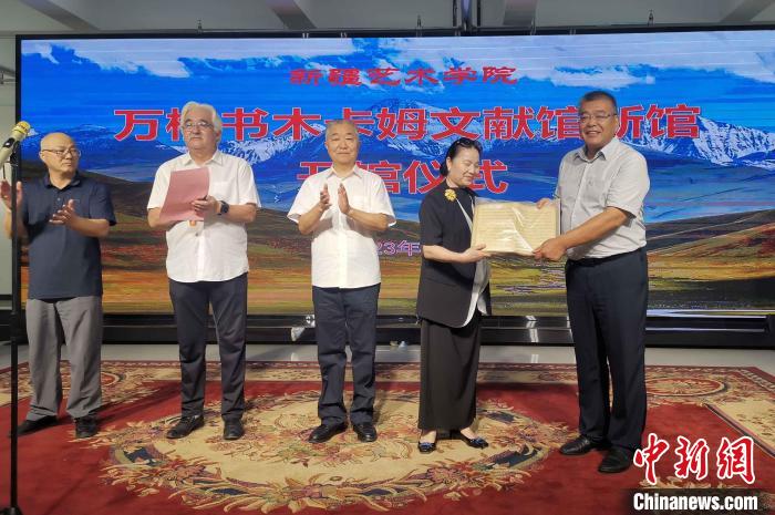 中新網(wǎng)烏魯木齊7月20日電 (胡嘉琛)“木卡姆記譜手稿不應塵封在書柜,應當讓更多人了解它、傳承它。把它交到專心做研究的學者手中,我很放心。”萬桐書之女萬靜20日在新疆烏魯木齊說。當日,萬桐書木卡姆文獻館新館在新疆藝術(shù)學院開館,萬靜將萬桐書1952年至1957年間收集整理的木卡姆記譜手稿贈給校方。
