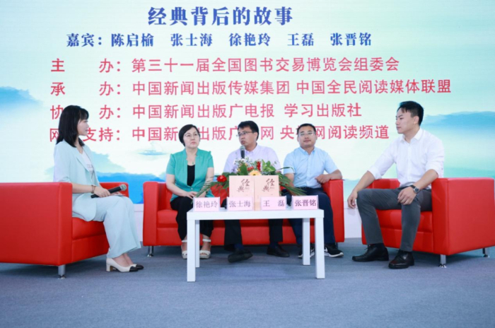 全民閱讀“紅沙發(fā)”系列訪談活動上,學(xué)習(xí)出版社介紹《經(jīng)典背后》的出版故事。組委會供圖