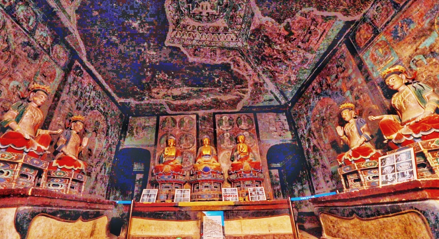 東千佛洞因地理位置相較于敦煌西千佛洞,故名東千佛洞,又因西夏7號(hào)窟前室東西壁對稱彩繪《接引佛祖》各一幅,故又名“接引寺”。初創(chuàng)于唐,五代、西夏、元、清各代增修,逐步形成較大規(guī)模的石窟群,現(xiàn)存23窟,以內(nèi)容豐富、技藝精湛的西夏壁畫稱絕于世,其密宗佛教壁畫填補(bǔ)了敦煌莫高窟壁畫藝術(shù)的空白。