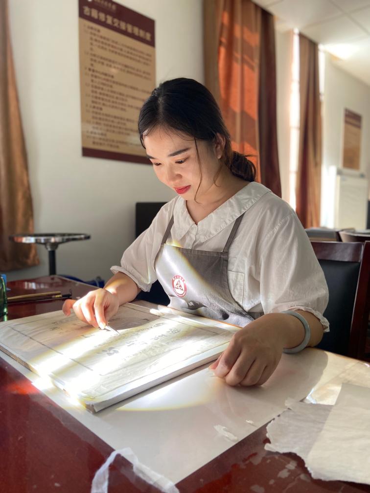 “85后”的耿寧是全國第一批古籍修復(fù)專業(yè)本科畢業(yè)生,2012年考入了安徽省圖書館歷史文獻(xiàn)部。6年的專業(yè)學(xué)習(xí),10余年的修復(fù)實(shí)踐,耿寧越來越理解導(dǎo)師、國家一級修復(fù)師潘美娣所說“修書亦修心”的含義,秉持“匠心”才是做好古籍修復(fù)的根本。